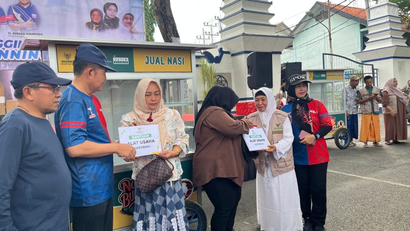 Dalam kesempatan tersebut, BAZNAS Sampang menyalurkan bantuan gerobak usaha kepada sejumlah pelaku usaha mikro di Kabupaten Sampang. Bantuan ini menjadi simbol nyata optimalisasi pengelolaan dana zakat untuk pemberdayaan ekonomi umat, sekaligus mendorong kemandirian para pelaku usaha kecil agar dapat meningkatkan taraf hidupnya.