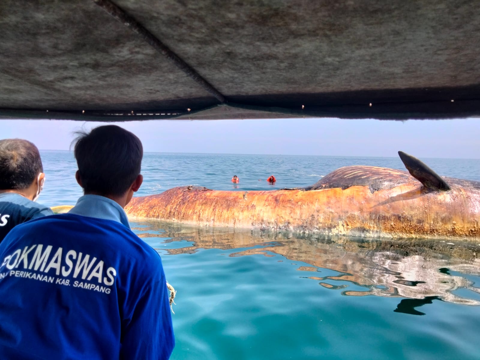 Menurutnya, ikan paus tersebut sudah meninggal sekitar Satu bulan yang lalau sehingga kondosinya membusuk