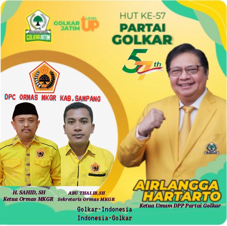 “Mengucapkan hari ulang tahun partai golkar ke 57 tahun dengan tagline “Golkar Indonesi-Indonesia Golkar.” unggahnya di IG@golkarsampang dan di fb@partaigolkarsampang, sabtu (16/10/2021).