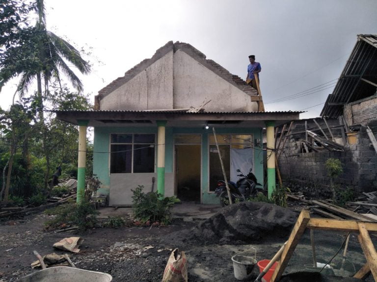 Korban erupsi Semeru perbaiki rumahnya dengan mendapatkan bantuan material seperti Asbes, kayu dan lainya, yang di dapatkan dari Dana Donatur yang telah sudi meyumbang sebagian rizkinya,