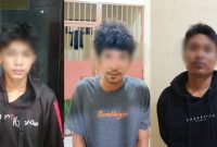 Tiga pelaku hanya tertunduk malu saat diamankan oleh polsek  tebing tinggi