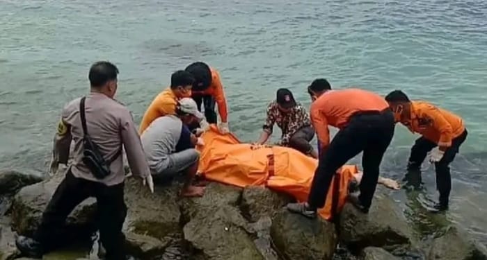 Proses evakuasi memakan waktu hingga pukul 12.45 WIB, dengan mayat ditemukan tersangkut bebatuan di pinggir pantai.