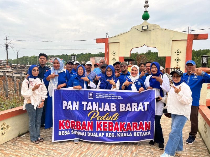 KUALA BETARA, Kabar –harian.com– Musibah kebakaran yang melanda Desa Sungai Dualap, Kecamatan Kuala Betara, Kabupaten Tanjung Jabung Barat, menarik perhatian berbagai pihak. Salah satunya datang dari Partai Amanat Nasional (PAN) yang menunjukkan kepedulian nyata dengan menggelar aksi sosial langsung di lokasi kejadian.