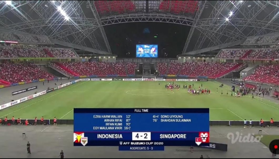 Tim asuhan pelatih asal korea selatan melawan Singapura di leg ke-II di semifinal berhasil taklukkan lawan dengan skor 4-2